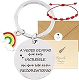 - 🫰🏻🎁[PACK ESPECIAL]: El pack incluye 1 llavero con frase motivacional y colgante de arcoíris, 1 Tarjeta de felicitación plegable de interior blanco para escribir un mensaje, 1 sobre color...